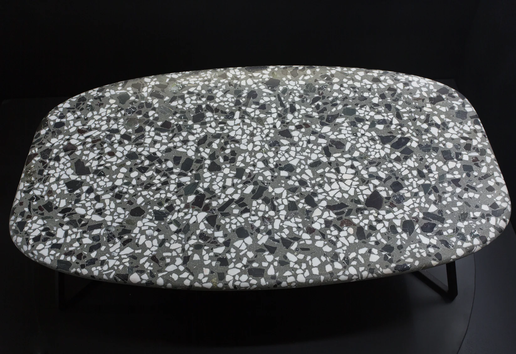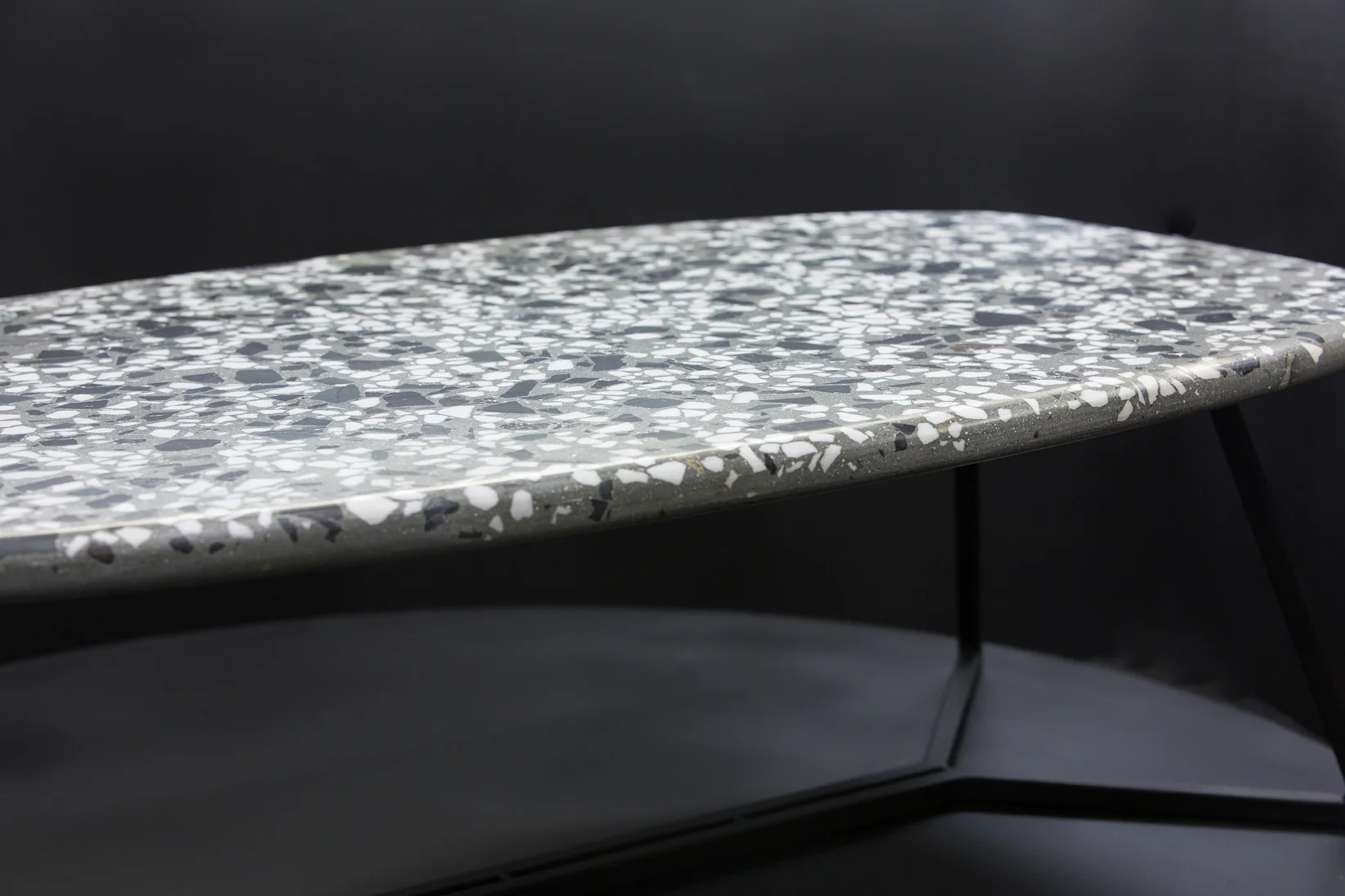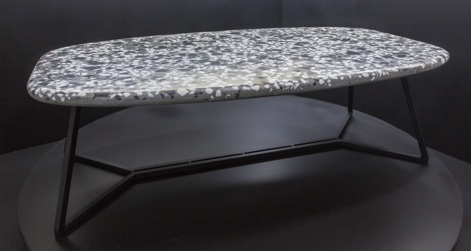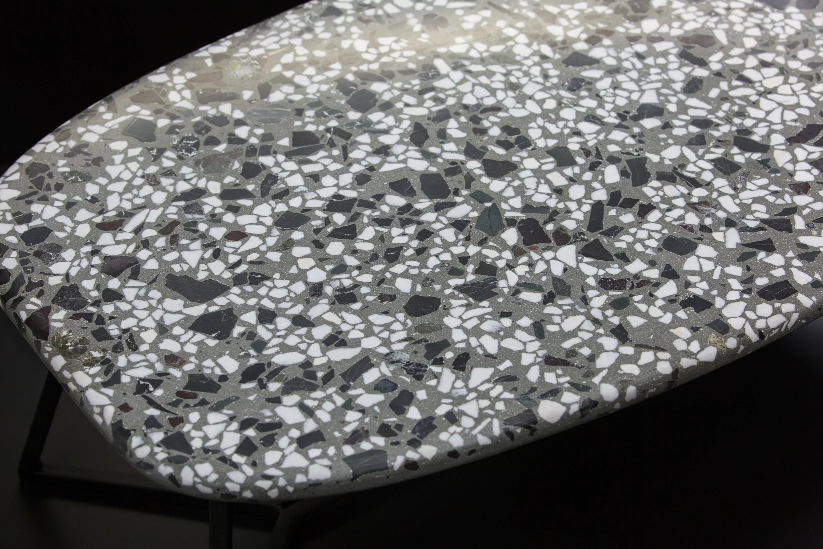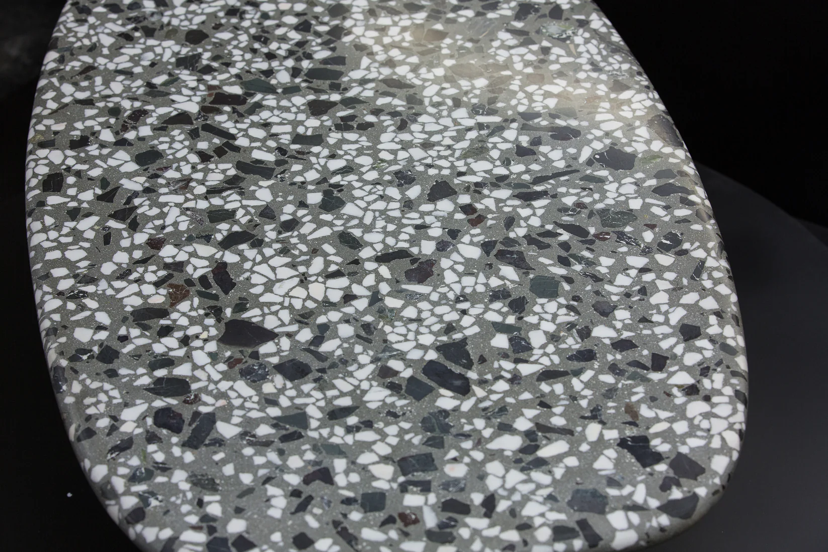 Tento elegantný terrazzo konferenčný stolík (60 × 100 cm) zaujme svojím štýlovým sivým terrazzo s ušľachtilým bielym mramorom a prírodným lomovým kameňom. Jemne zaoblené hrany mu dodávajú moderný a harmonický vzhľad.