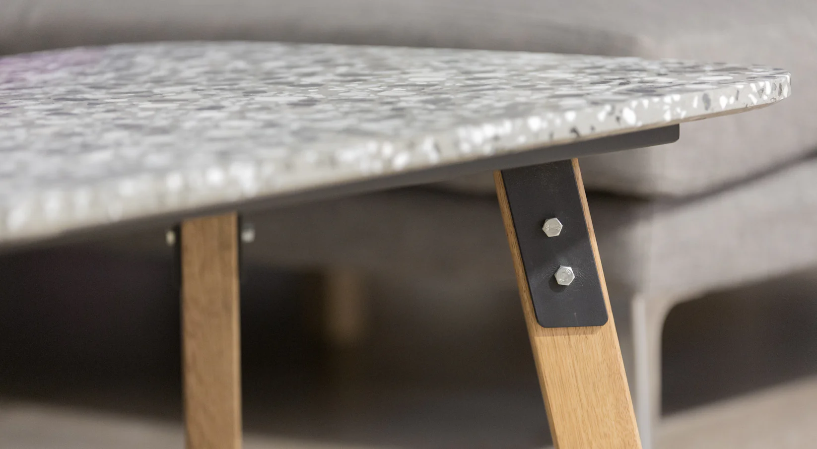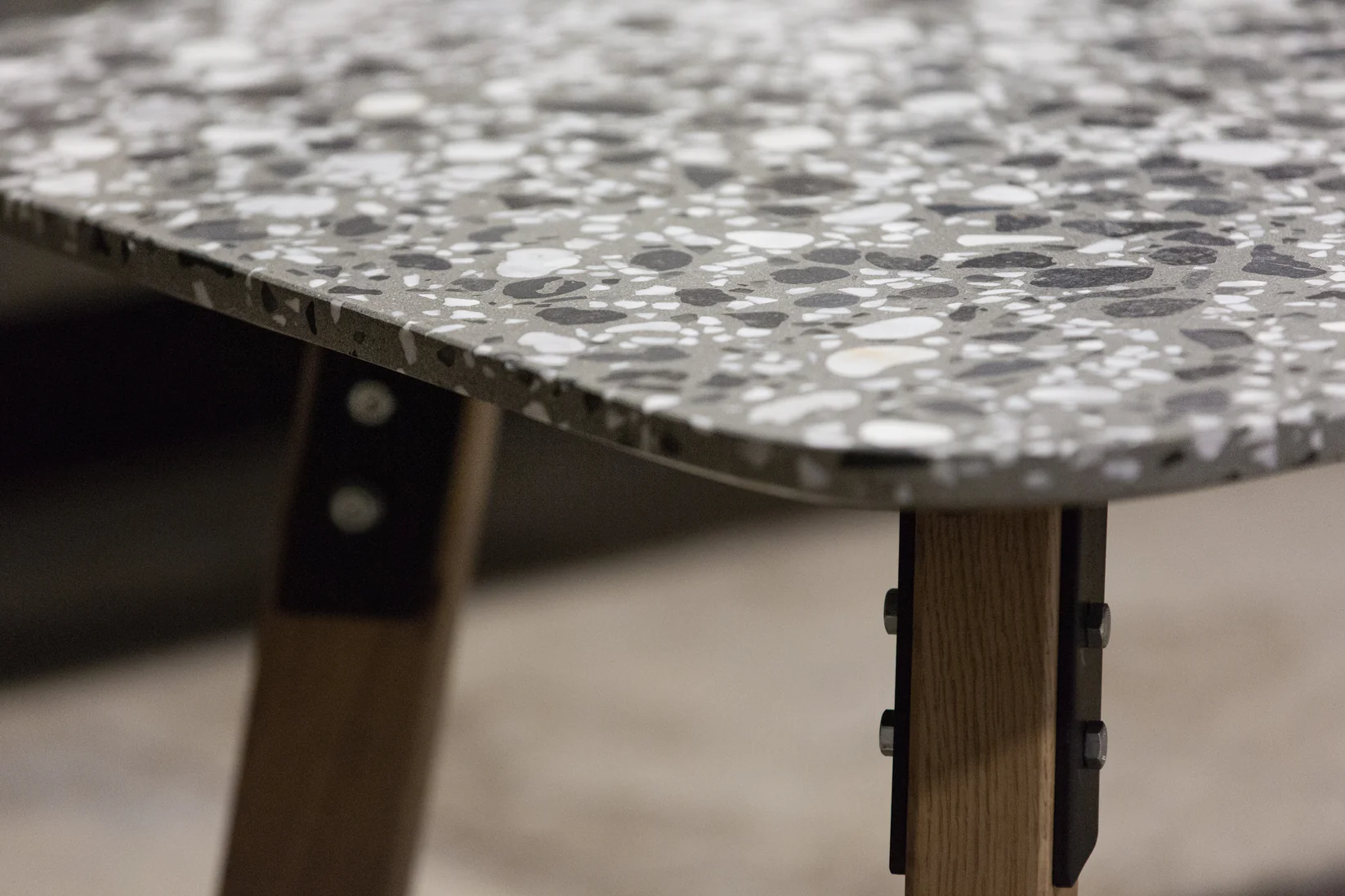 Podnož stolíka je vyrobená z kvalitného kovu a masívneho dubu, čím zaručuje pevnosť, stabilitu a nadčasový vzhľad. Elegantné spojenie prírodného dreva a industriálneho kovu vytvára harmonický kontrast, ktorý sa hodí do moderných, industriálnych aj škandinávskych interiérov.