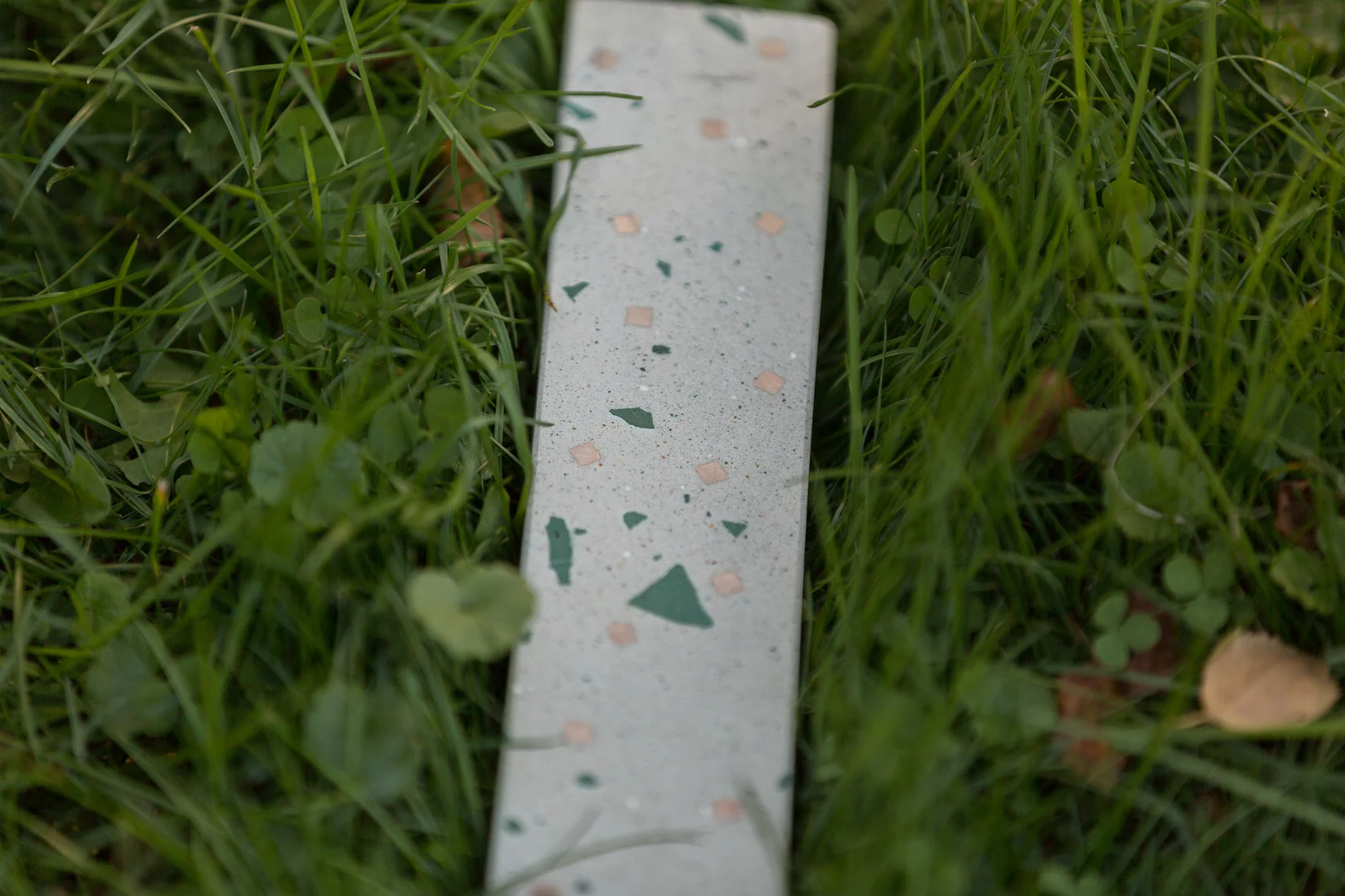 Držiak sa jednoducho upevňuje pomocou obojstrannej lepiacej pásky, bez potreby vŕtania či montáže. Vďaka svojmu materiálu dokonale ladí s terrazzo pracovnými doskami, stolmi alebo inými doplnkami v interiéri.